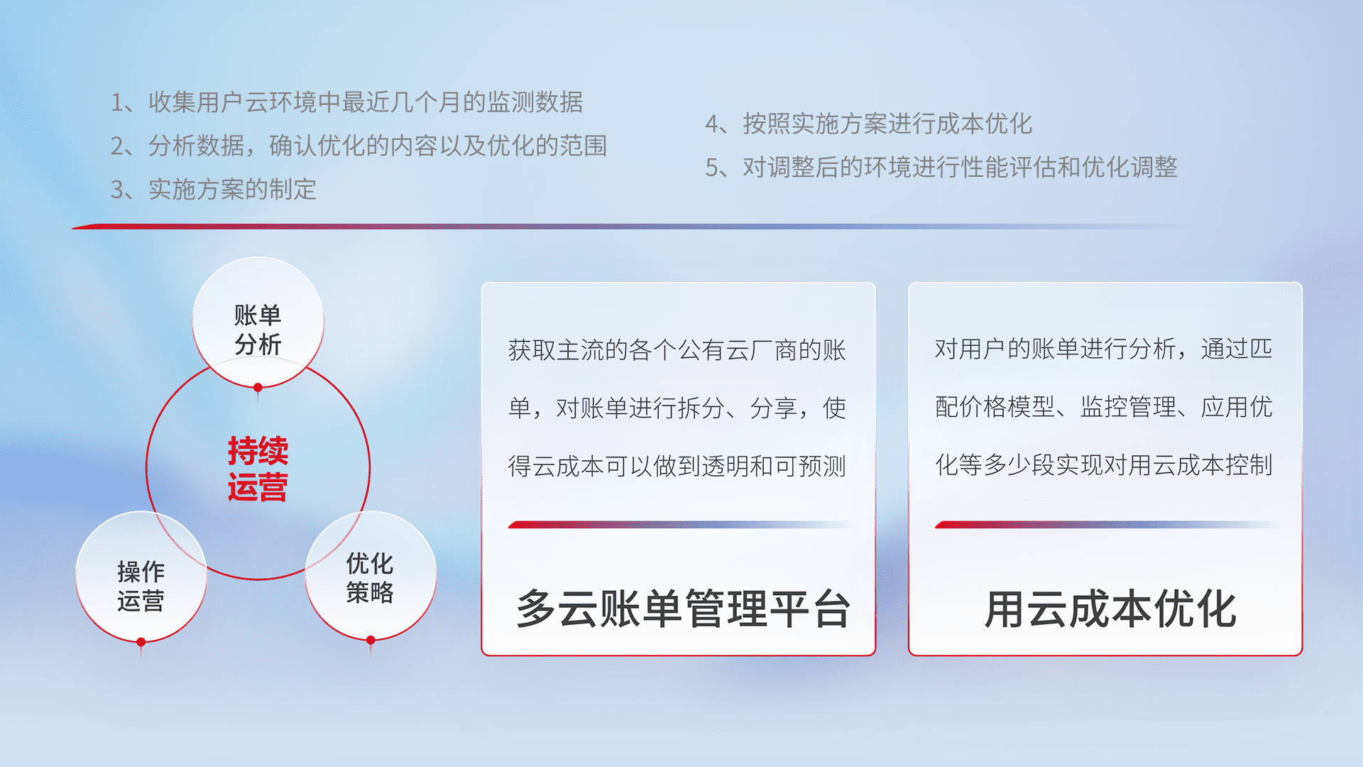 监控业务系统资源开销,,对资源的消耗精确计量,,,实现费用的透明化管理,,不断提升资源使用率,,,,调整资源购买方式,,,,降低资源费用成本,,用云成本可预测、、、、用云费用可优化,,云资源配额有据可依。。。。